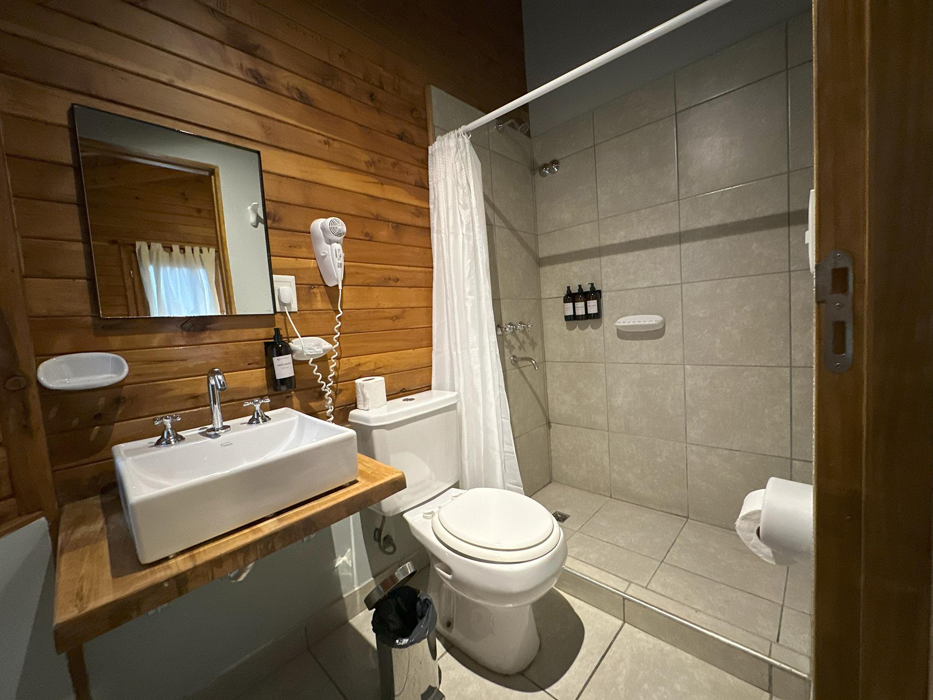 Ubicada en un sector tranquilo, a solo 80 metros del edificio principal, ofrece privacidad y un entorno natural junto al jardín. La habitación dispone de armario, calefacción y caja de seguridad. Puede configurarse con una cama doble o dos camas individuales. Incluye TV LED, wifi de alta velocidad, y baño privado completo con toallas, secador de pelo y amenities. El acceso es mediante escalera.